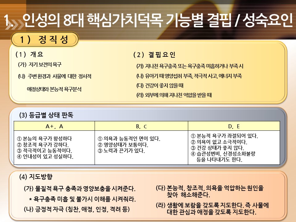 2. 인성의 8대 핵심가치덕목 기능별 결핍/성숙요인